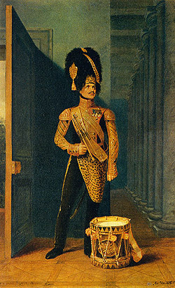 ![]() Портрет барабанщика Роты Дворцовых Гренадер В. Акентьева. 1828 г.