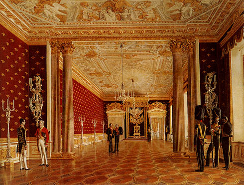 ![]() Вид Тронного зала императрицы Марии Федоровны в Зимнем дворце. Начало 1830-х годов.