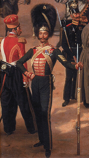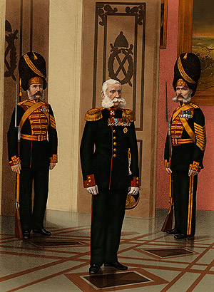 ![]() Штаб-офицер и гренадеры Роты Дворцовых Гренадер в обыкновенной и парадной форме, 18 июля 1878.