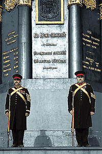 И за два года мы собрали огромную массу информации по роте, знаем ее историю, создали небольшой музей, нашли потомков людей, служивших в роте, и продолжаем эту работу. Большую помощь в этом нам оказали сотрудники Государственного Эрмитажа Виталий Королев, Сергей Летин (ныне покойный, вечная ему память), Красногорский архив кинофотодокументов, РГВИА, и многие люди, интересующиеся историей. В отличие от боевых полков Русской армии, рота Дворцовых гренадер не имеет боевой истории как армейское подразделение. Однако каждый из солдат, служивших в роте, представлял собой живую историю славных боевых подвигов русского оружия. И создавалась рота как живой памятник боевым победам, недаром на ее знамени было начертано: «В воспоминание подвигов Российской гвардии». И одной из задач нашего клуба является доведение до людей, особенно интересующихся историей, достоверной информации об их подвигах, образе жизни и т. п. А основная цель — 200 лет Бородинского сражения сделать хоть немного похожим на настоящий праздник. Статья опубликована в журнале-альманахе «МАРС», №4 2006 г. © Все материалы сайта являются собственностью Военно-исторического объединения